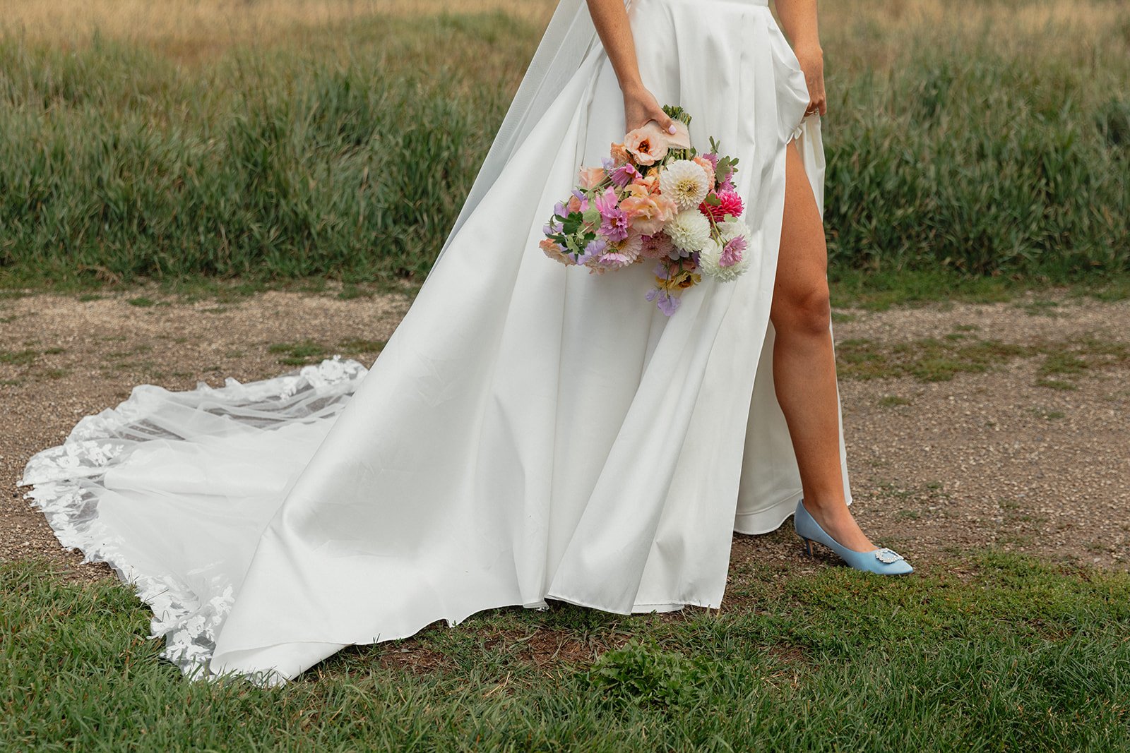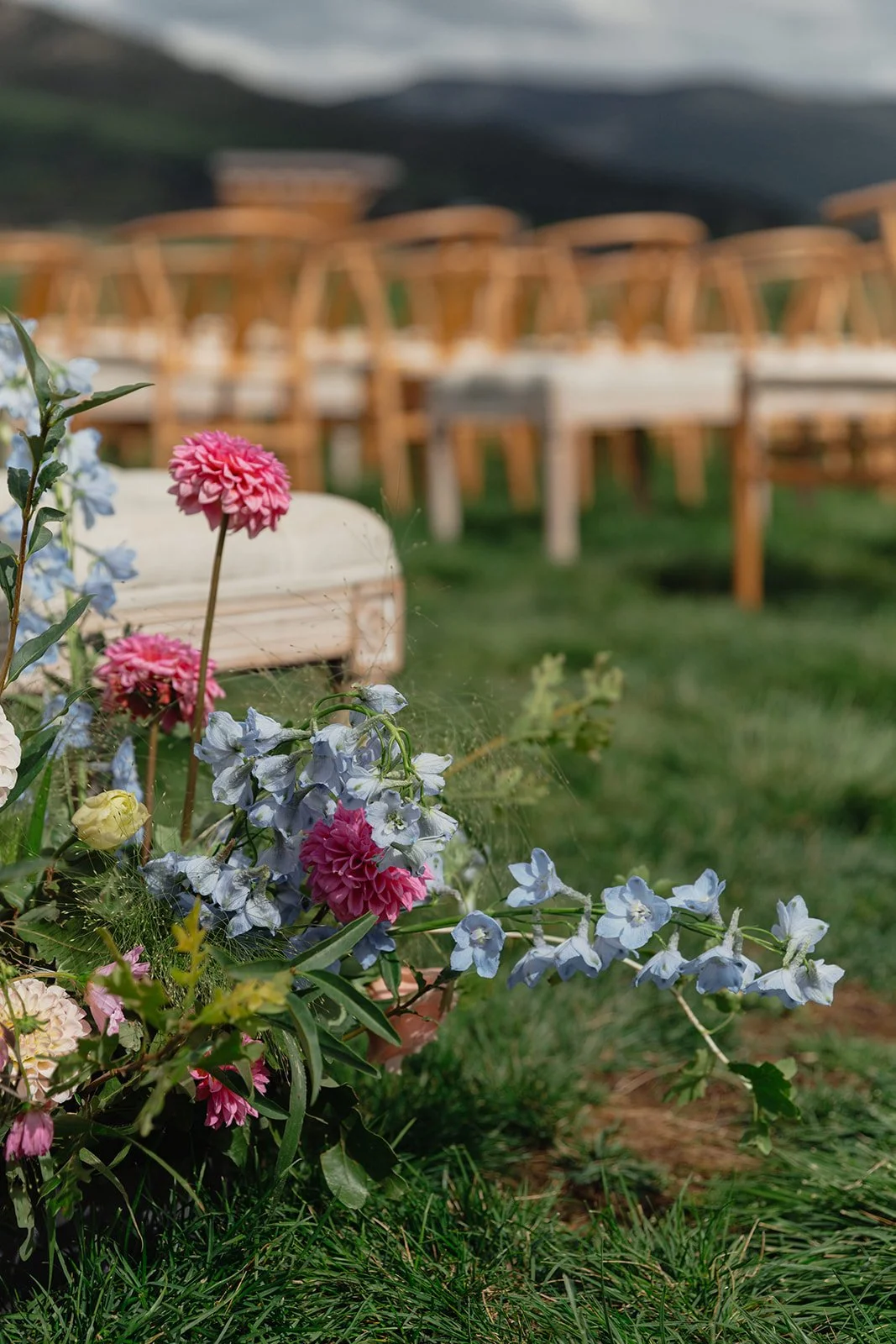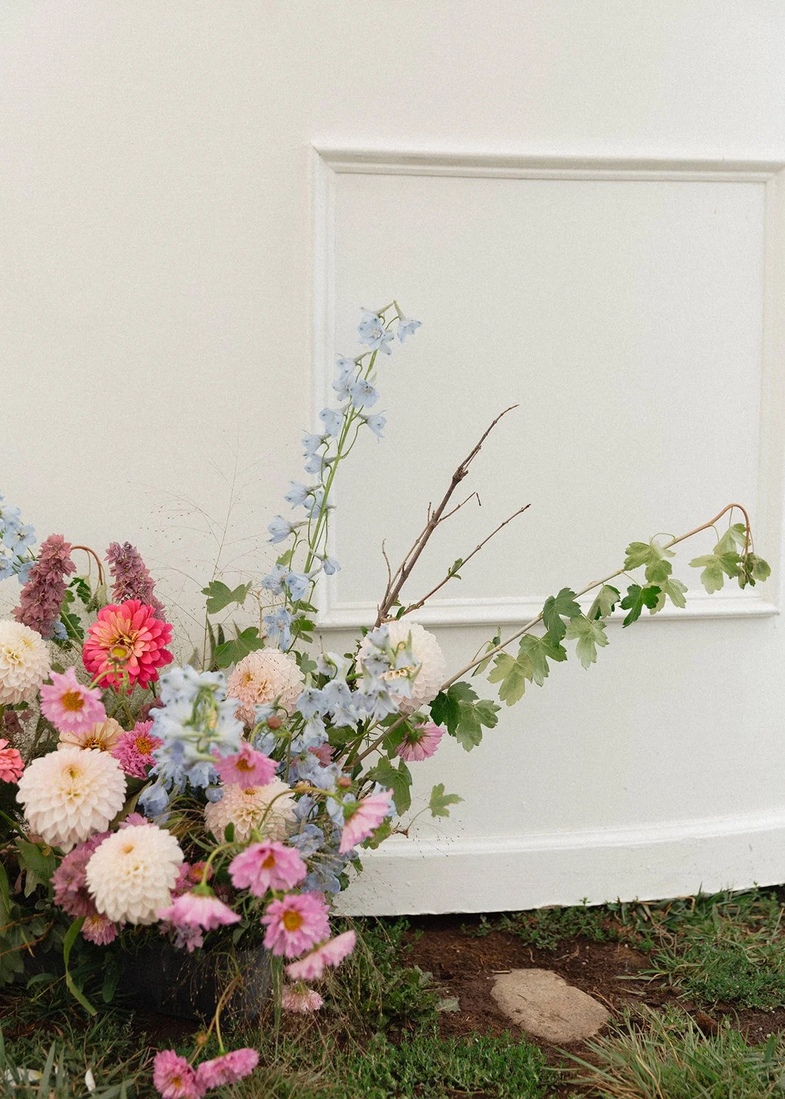 For their romantic, peak summer celebration, Maddy & Charles chose a floral color palette that was rooted in a fern green, ivory, and shades of pink from blush to magenta was brought together with pops of sky blue and a soft & buttery yellow.
