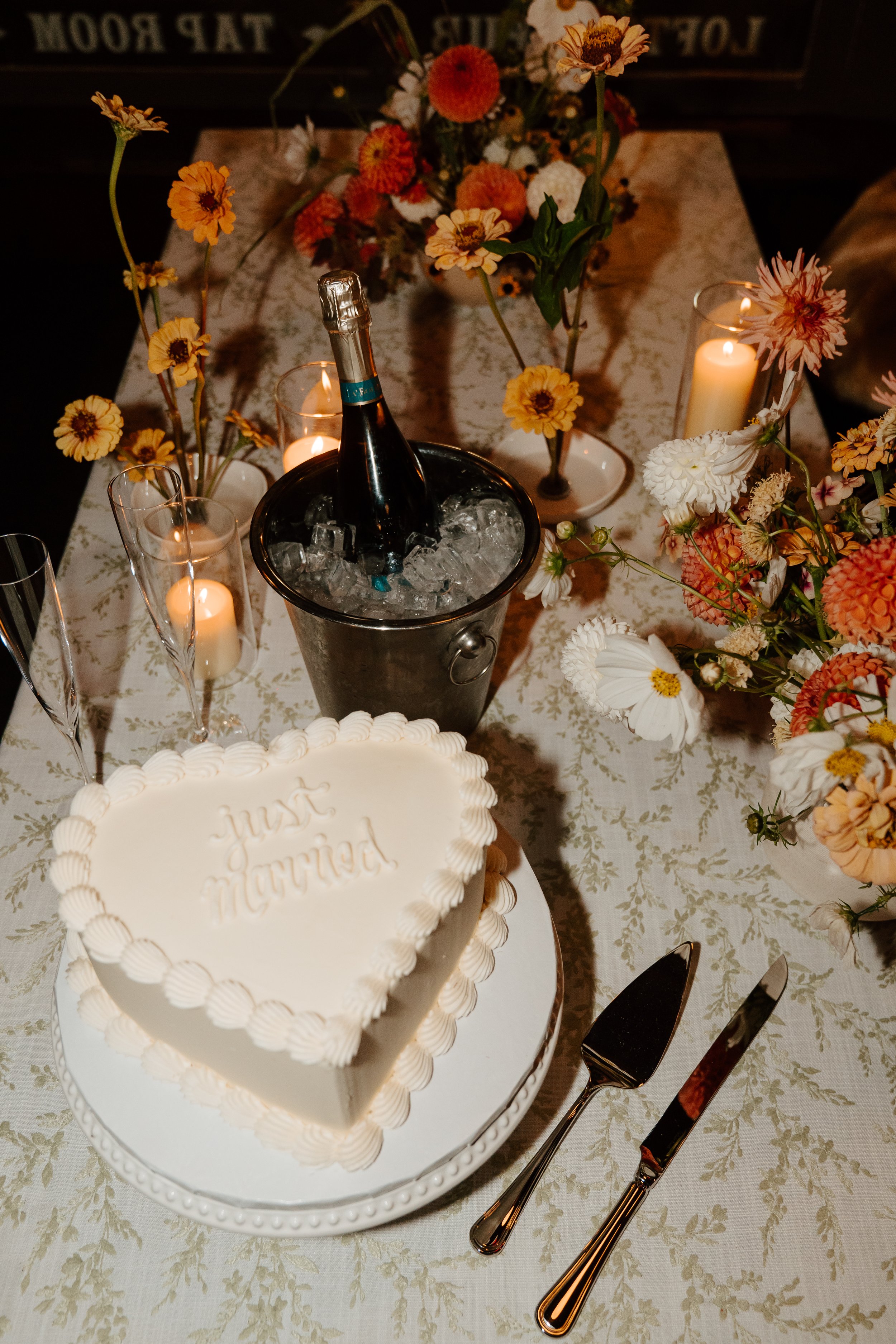 Following their ceremony at Woods Walk, the bride and groom enjoyed a lively party at The Public House. With sculptural florals, lots of candles and an artful approach to their casual reception West Elk Floral helped transform the space into something truly elegant and memorable.