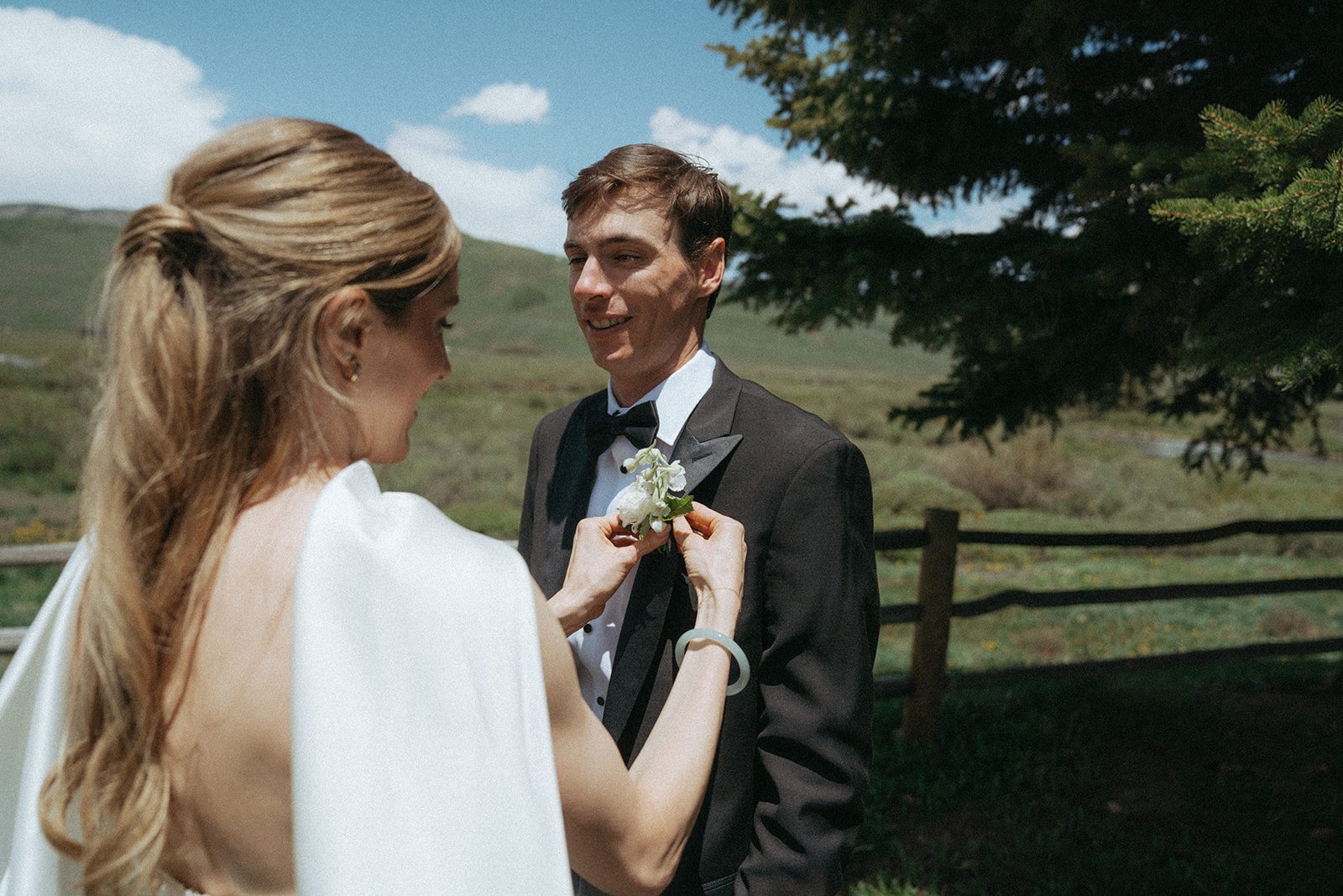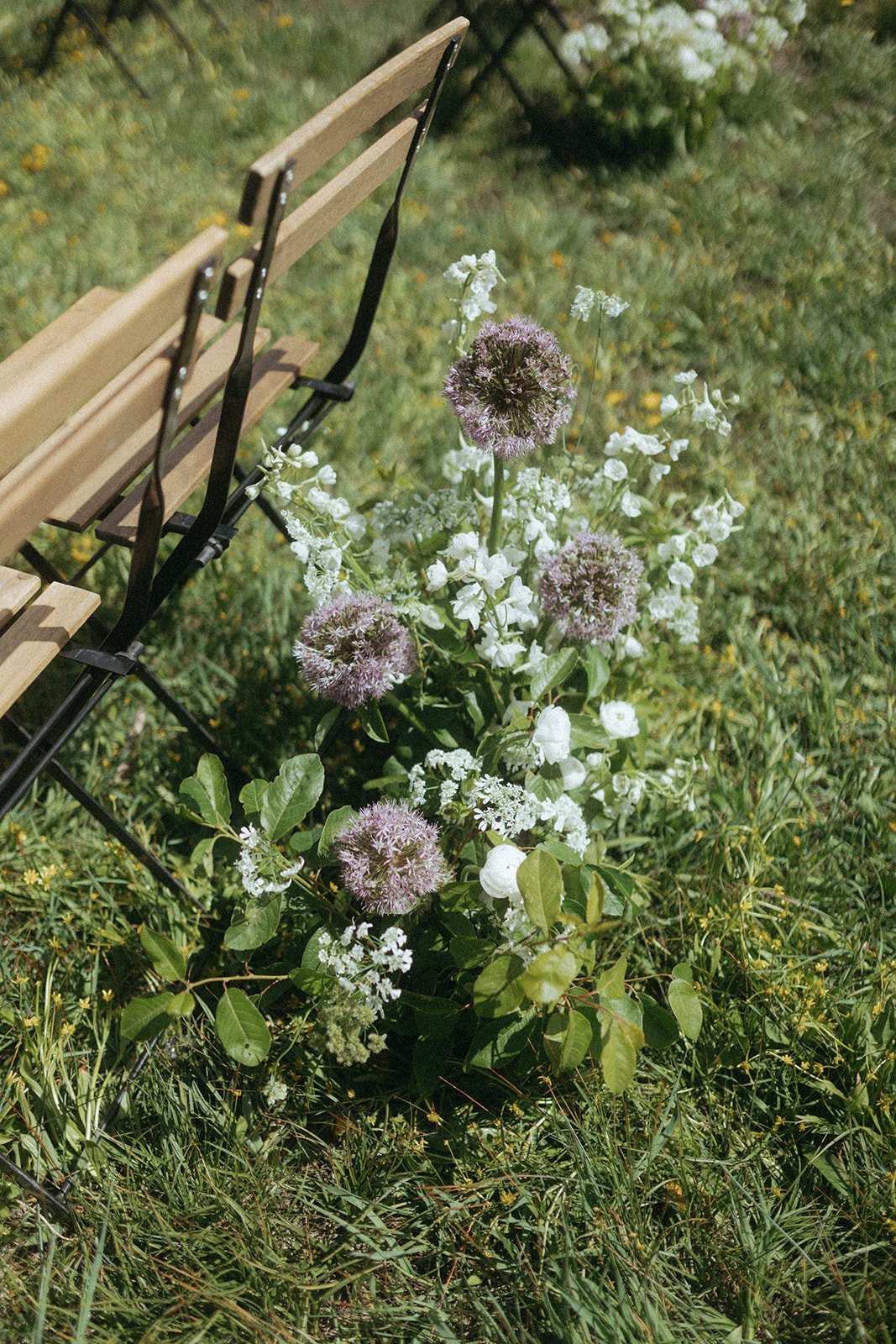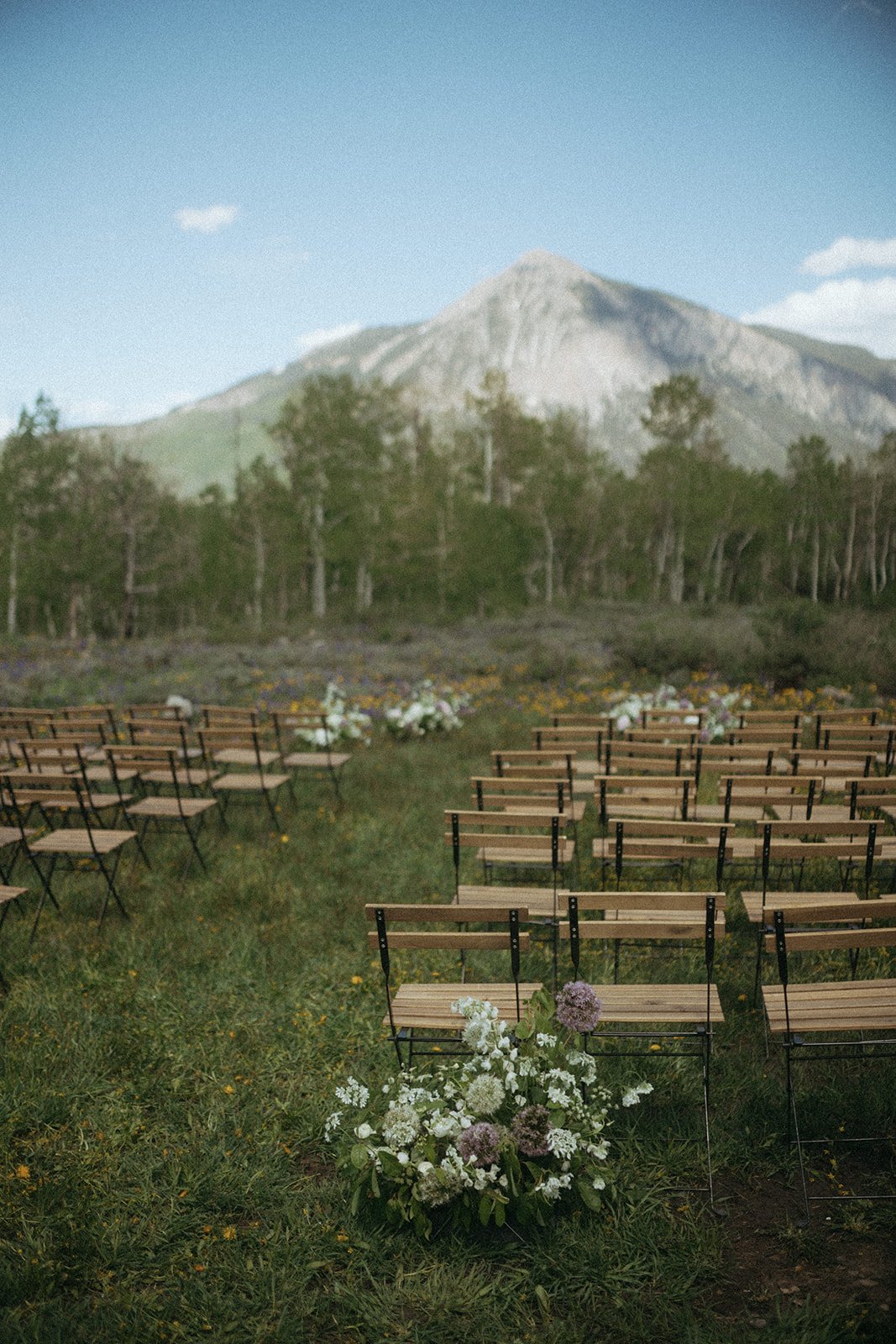 Shannon & Ethan were wed under the early June sun. Framed with the backdrop of Mt. Crested Butte at the Woods Walk venue, they said I do. White and greenery focused florals with touches of straw yellow and lavender reflected the lupine and dandelions blooming in the background of their ceremony. Elegant and classic with a garden twist, the florals were both timeless and unique.